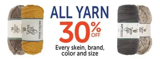 Hurry in and save! Shop in store and get 30% off on all yarn.