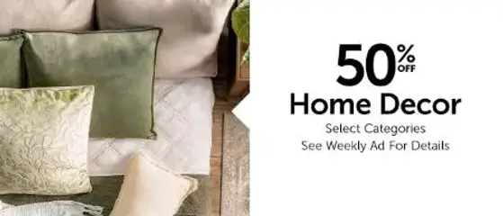 Save now! Shop in store and get 50% off on home decor.